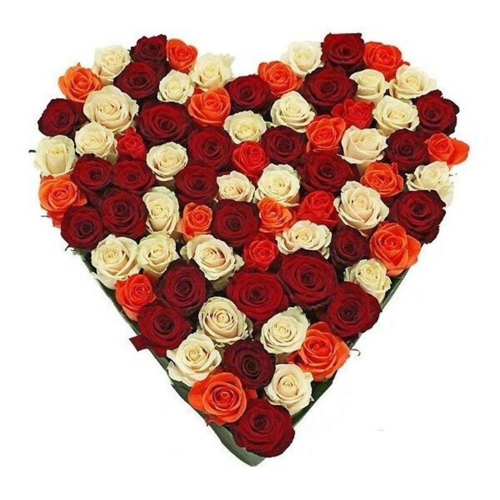 Композиция "Сердце" MIX из роз 75 шт.